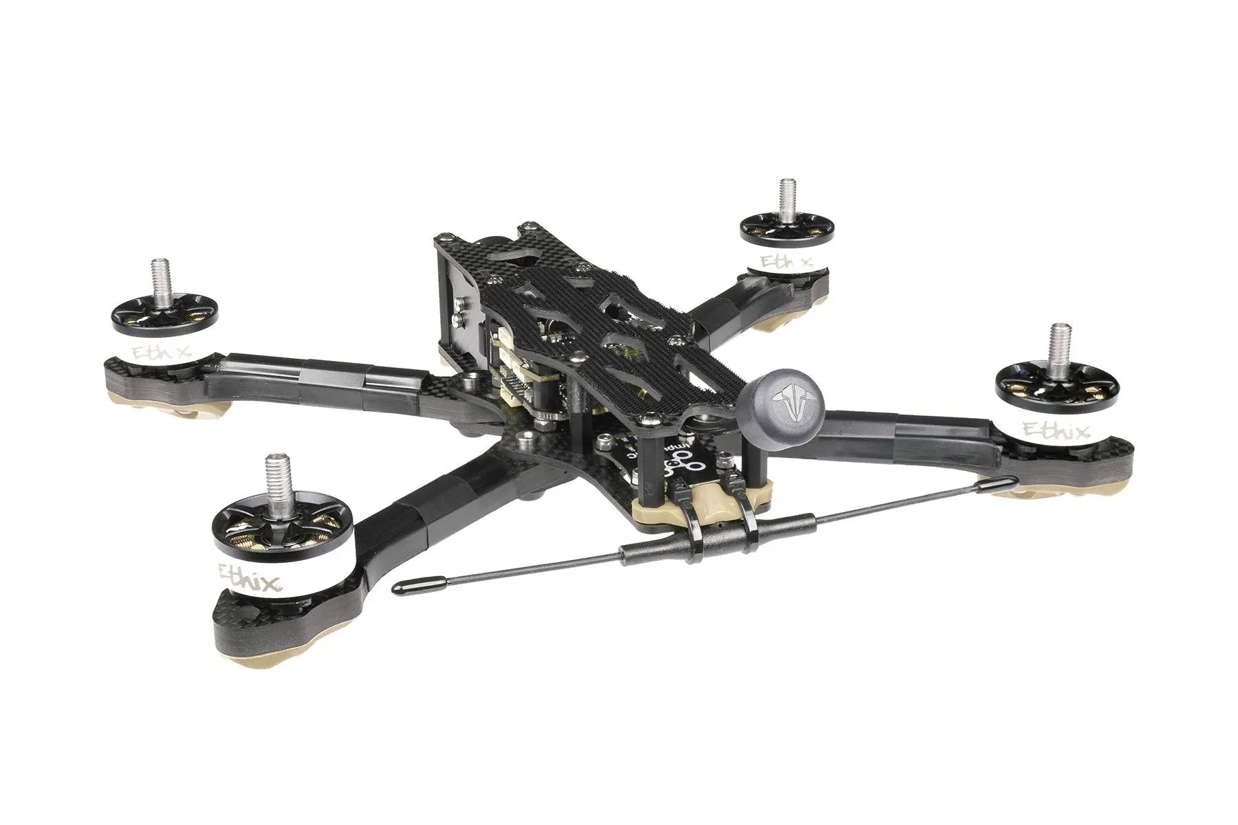 All'apice di un arco in muratura una chiave di volta blocca tutte le pietre in posizione e consente all'arco di sostenere peso ed essere autoportante. Una chiave di volta è un segno distintivo di forza e buon design, il telaio Apex FPV non è diverso e la chiave in carbonio si trova nel cuore del telaio per distribuire le forze applicate alle braccia.